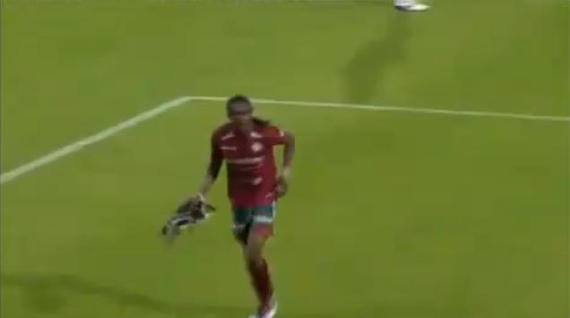 そんなピッチの守護者たるところを見せたのは、ベルギーリーグはズルト・ワーレゲンに所属するムハマド・アビブさん。アビブさんは、見た目とか悪意のなさとか、そんな上っ面に惑わされることなく「乱入者を乱入者として」厳格に処分することに成功。ジタバタする乱入者を豪快に投げ飛ばして見せたのです。