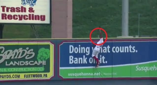 今回僕は驚かされたのはマイナーリーグのとある試合。外野に大飛球が飛んで、それをセンターが追い掛け、フェンスによじ登ってジャンプ一番キャッチ!というプレーが飛び出したのです。まぁこの時点でスゴイ話ではあります。地方都市の小規模球団であれば、記念の像くらい作るレベルのナイスプレー。しかし、アメリカ野球はただ追い掛けて捕るだけの野球ではなかったのです…。