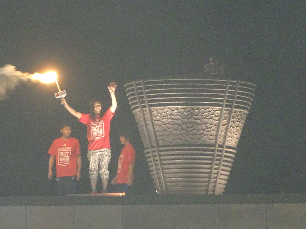 ↓最後の聖火をつけた人が、最初の聖火をつける!