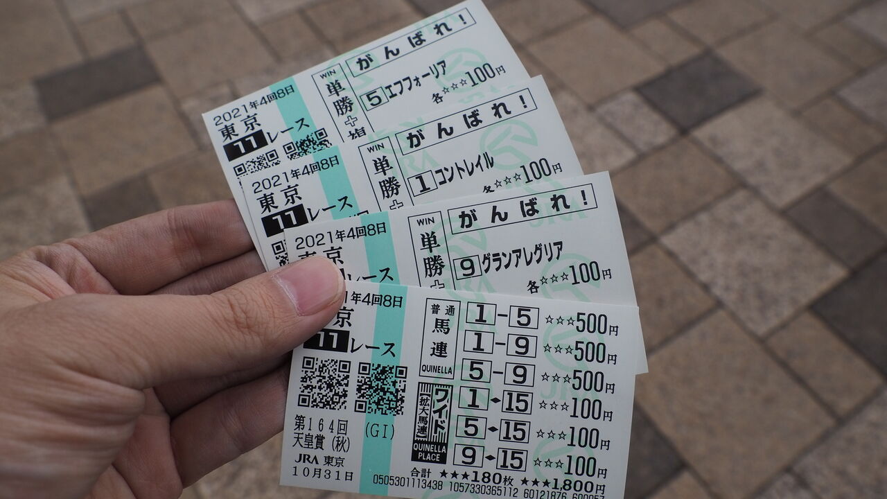 投票に行ってまいりました。もちろん衆議院選挙の話ではありません。勝馬投票券の話です(※衆院選は期日前に投票済)。先日軽めの自慢をしましたように、人数制限での開催がつづいている中央競馬の入場券を取る「コツ」をつかみまして、激戦と噂されたGI天皇賞秋の開催日も見事に入場の運びとなったのです。