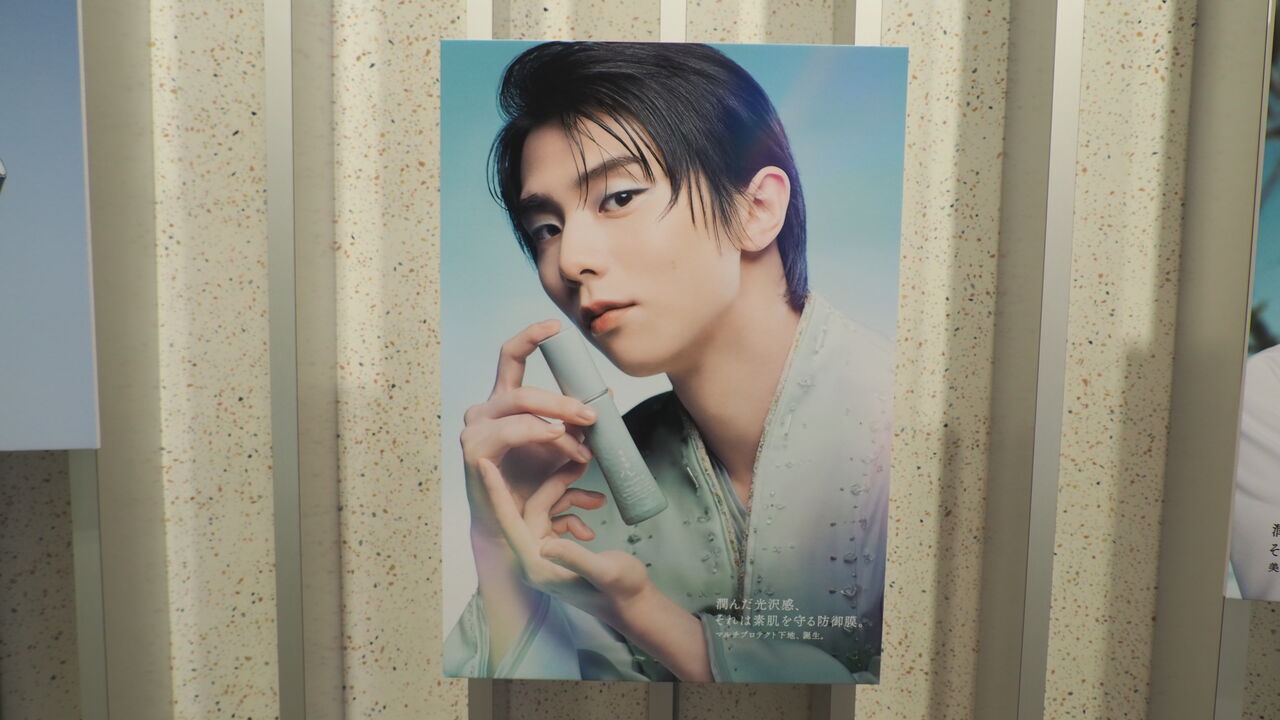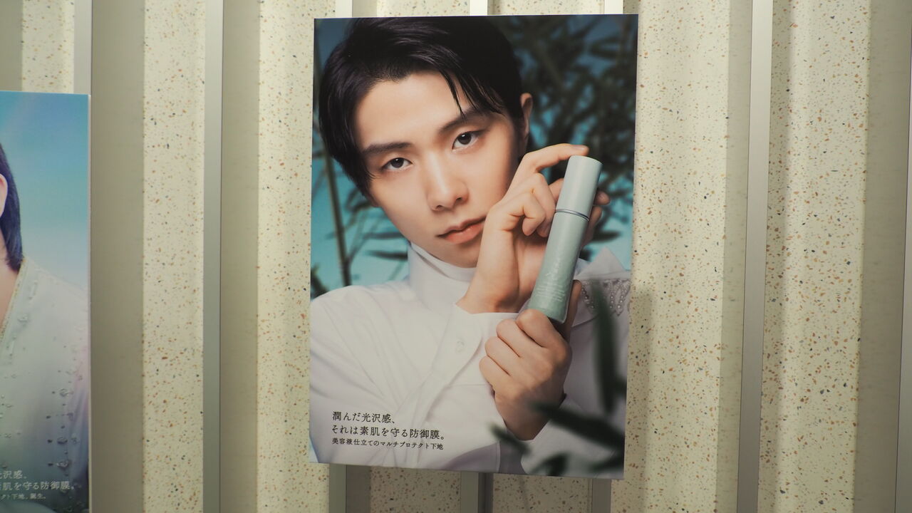 こちら雪肌精みやびモイスチュアプロテクトセラムの発売1周年を記念した展示とのことで、本商品の各種告知等に登場する羽生結弦氏のビジュアル…通称「若竹の君」にちなんで、若竹空間のなかに若竹の君のフォトパネル展示や羽生氏のスケート靴の展示をしているとのこと。展示自体は期間延長によって7月10日まで開催されるとのことですが、スケート靴の展示は6月30日までとのことで、まさにこの日が最終日。これはぜひ見ておかねばならぬと遅ればせながらうかがったのでした。