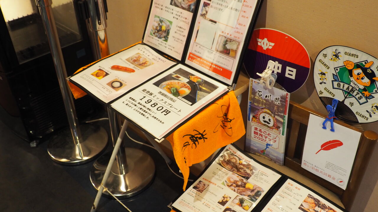 ↓巨人のサイン入りタオルはメニューが滑り落ちないように応援していました!