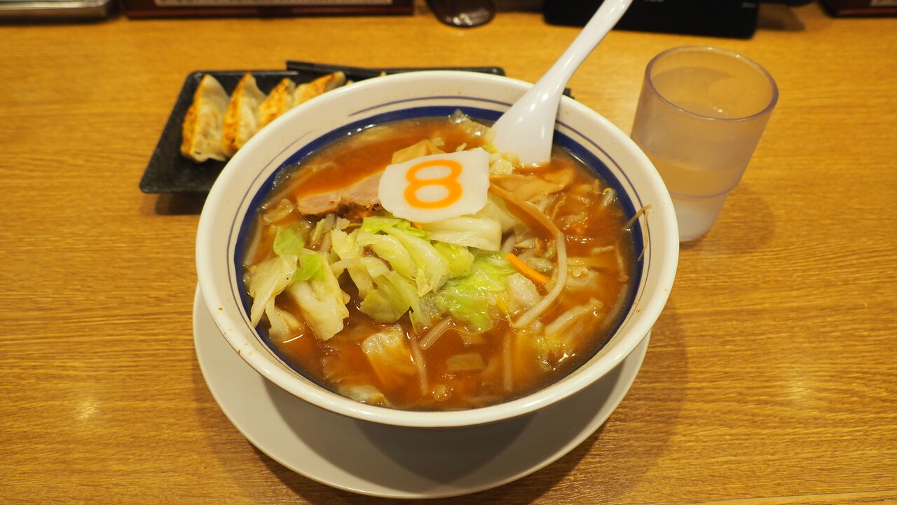 その後は駅前にそびえる巨大な鼓門など眺めつつ、ゆったりと夕食の物色をします。少し市内散策などもしつつ、前日から思い描いていた計画として、金沢駅にある8番らーめんさんにうかがうことにしました。この旅のなかでバスの車窓から街道沿いにたくさんのお店を見ており、特に下調べして来たわけではないのですが、この8番らーめんさんこそが間違いなく地元随一のラーメンチェーン店であろうとあたりをつけたのです。