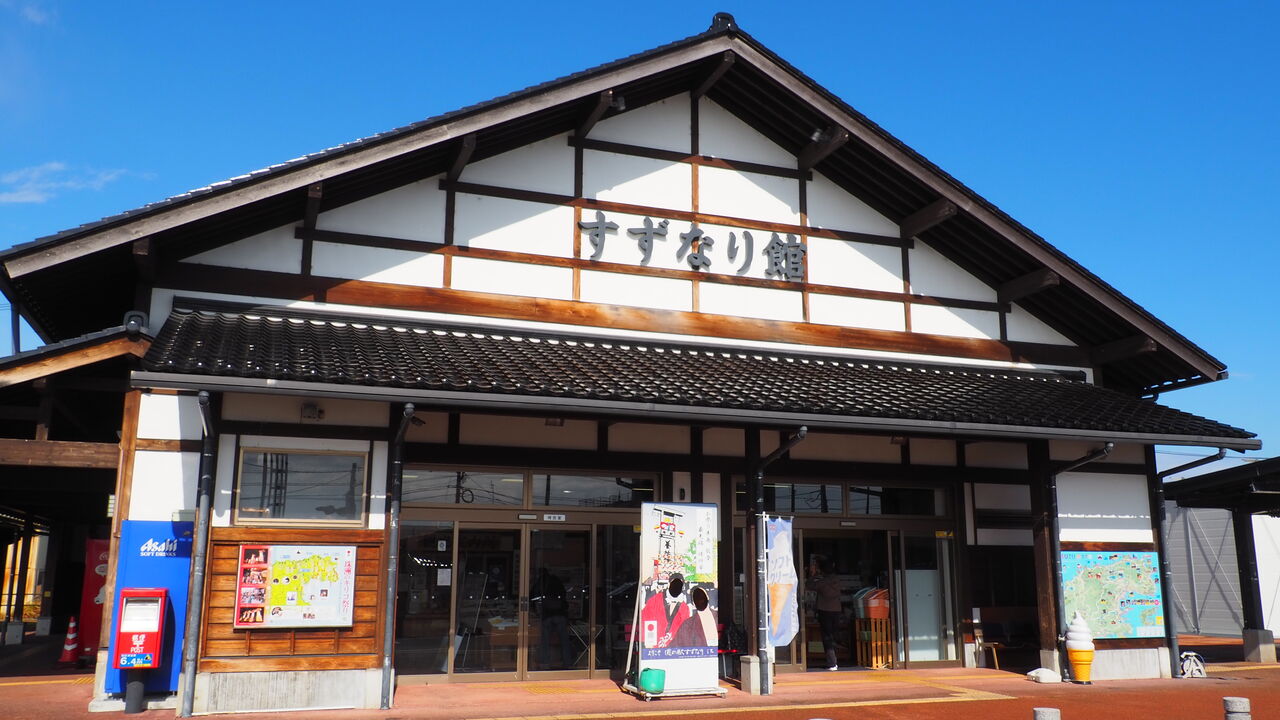 のと里山空港で珠洲方面への路線バスに乗り換え、バスに揺られることトータル4時間ほどにして、まずはこの日最初の目的地となる道の駅すずなりに到着。行程検討中に最初に地図を見たときに「んあ?」となった始まりの場所に何とかたどり着けました。こちらには等身大パネルAが設置されており、あたかも「1枚目にゲットするのじゃぞ…」みたいなナンバリングでしたが、いやー、はるばる来たなって感じです。RPGで出発点のすぐ近くに見えてたラスボスの城まで来た、みたいな遊び心を勝手に感じる訪問でした。
